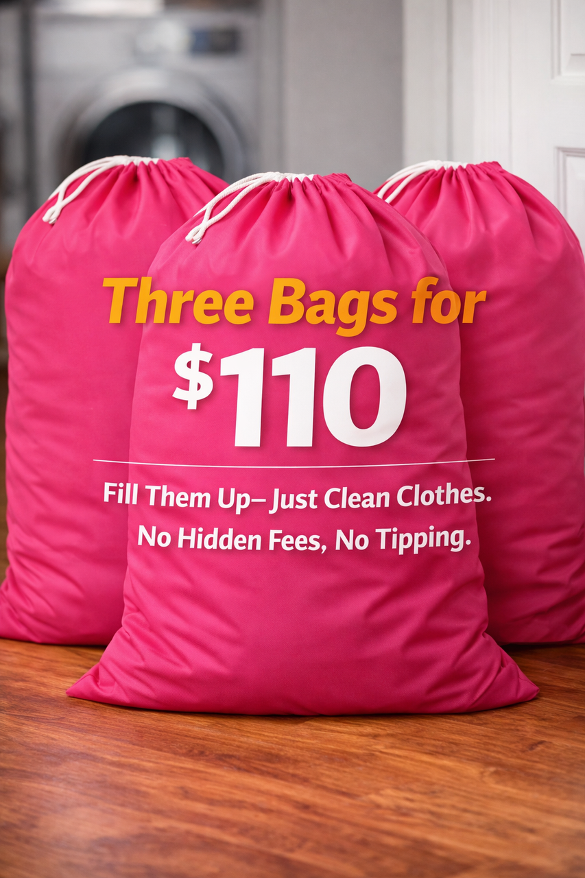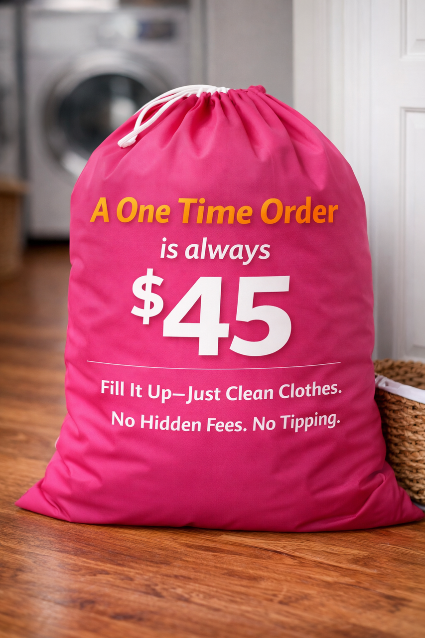 We wash by the bag, Pack It Full! — One Flat Rate Per Bag.